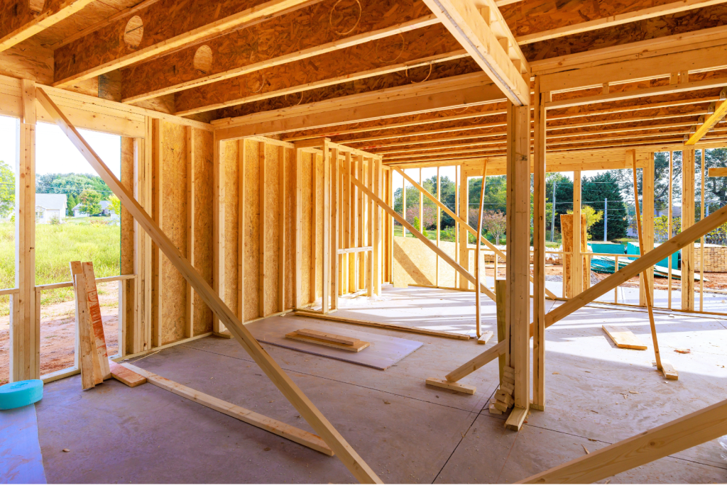 2. Frame Stage – Walls and roof trusses go up.