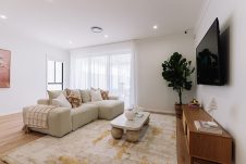 The Mayfair brings smart design and contemporary style together in a double-storey layout. A front sitting area and theatre offer spaces to work or relax, while the open-plan kitchen with walk-in pantry flows into light-filled living and dining. Upstairs, four bedrooms and a second lounge give the family room to spread out — all on a design suited to narrow lots.