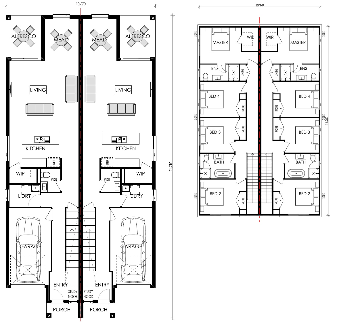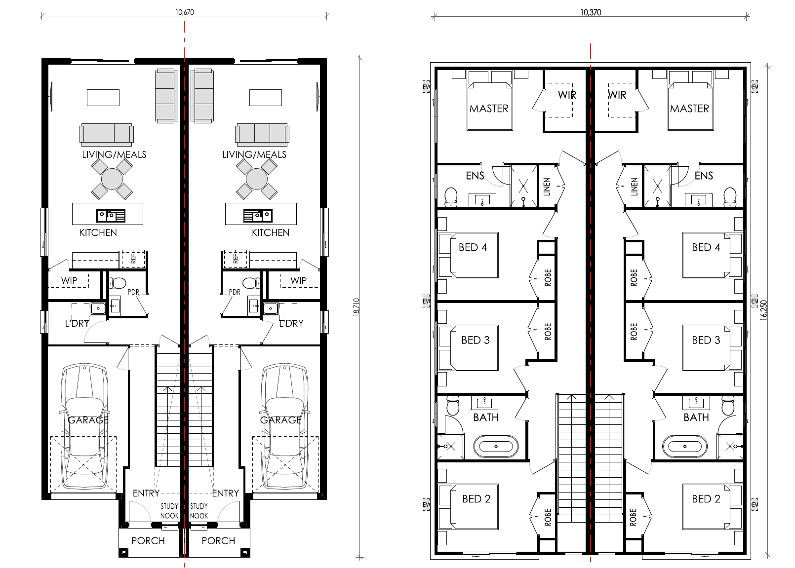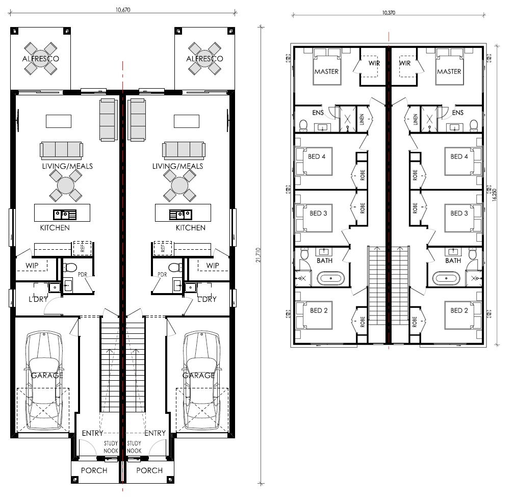 The Peridot is a contemporary duplex design in the Creative Collection and suited to 12.5m lots. Each home features four bedrooms, two bathrooms, a powder room and a single garage. A study nook at the front provides the perfect work-from-home space, while open-plan living connects seamlessly to a spacious kitchen with walk-in pantry. Alfresco options are included in the MKII and MKIII designs for easy indoor-outdoor living.